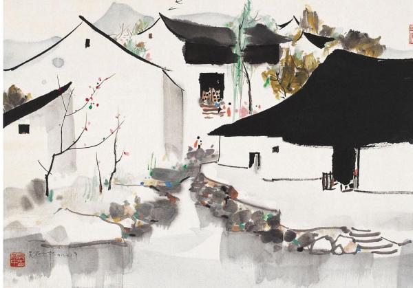 在滿足了基本需求后,孟浩凡才開始考慮,如何為這座古鎮(zhèn)保留傳統(tǒng)江南民居的神韻,又體現(xiàn)出現(xiàn)代學(xué)的美感和創(chuàng)意。他想到了畫家吳冠中。孟浩凡說,比起具象的元素,他更多考慮的是保留“氣質(zhì)”。“比如說你看這色調(diào),色調(diào)是白墻綠瓦,中間有一些灰色系的這種磚,都是老色調(diào)的基底給我們的感覺。這種壓頂?shù)木€條,像吳冠中的畫,都是很抽象的嘛。畫江南民居,他畫出來很抽象的藝術(shù)畫,沒有具象的符號,但是你一看這個東西它就是江南的,因?yàn)槲蓓數(shù)倪@種曲線、線條,勾勒出了江南的這種俊秀。”