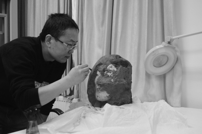 2010年,劉江衛(wèi)用了近三個(gè)月修復(fù)這個(gè)俑頭,其彩繪保存程度非常好。