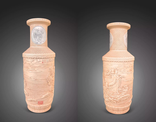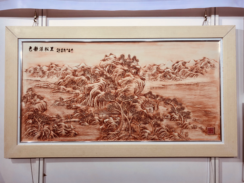 這是曹愛(ài)勤首次參加深圳文博會(huì),帶來(lái)了她所創(chuàng)作的陶瓷、篆刻、書(shū)畫(huà)等多種形式的藝術(shù)作品,可以看到其不同形式作品的創(chuàng)作技法、主題、表現(xiàn)手法等均有較大差異,充分體現(xiàn)了曹愛(ài)勤在陶瓷藝術(shù)道路上追求卓越、勇于創(chuàng)新的新時(shí)代大國(guó)工匠精神。在其創(chuàng)作中,特別是作為中國(guó)陶瓷重要組成部分的陶瓷雕刻作品《色靜深松里》、《八仙過(guò)?!?,承載了國(guó)畫(huà)、雕刻、裝飾等綜合性藝術(shù)手法,每件作品都充分體現(xiàn)出工匠技能,堪稱(chēng)學(xué)貫中西、熔鑄古今之珍品。