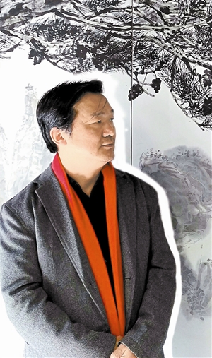 王和平說,指畫在美術(shù)大詞典里面能查得到的,起源于清初高其佩到高秉,再到“揚(yáng)州八怪”一直到近代。而指書就更早了,明末傅山是寫指書的,但是指書沒有指畫傳承得好,寫指書比畫指畫難度大。王和平說:“我寫指書的目的是為了畫畫,指畫最大的弊病就是不能畫長線和塊面,所以我在指書方面學(xué)到的最大的經(jīng)驗(yàn)就是畫長線。對(duì)于手指畫山水畫,原來的老先生畫山水都要用毛筆輔助上色的。我在研究的課題中,對(duì)我最有幫助的就是我畫指畫不再用毛筆上色,而是直接用手指、手背、手掌上色,而且上色比較均勻,最后畫面呈現(xiàn)的味道我覺得比毛筆上色的味道更濃、更有成像感?!?/p>