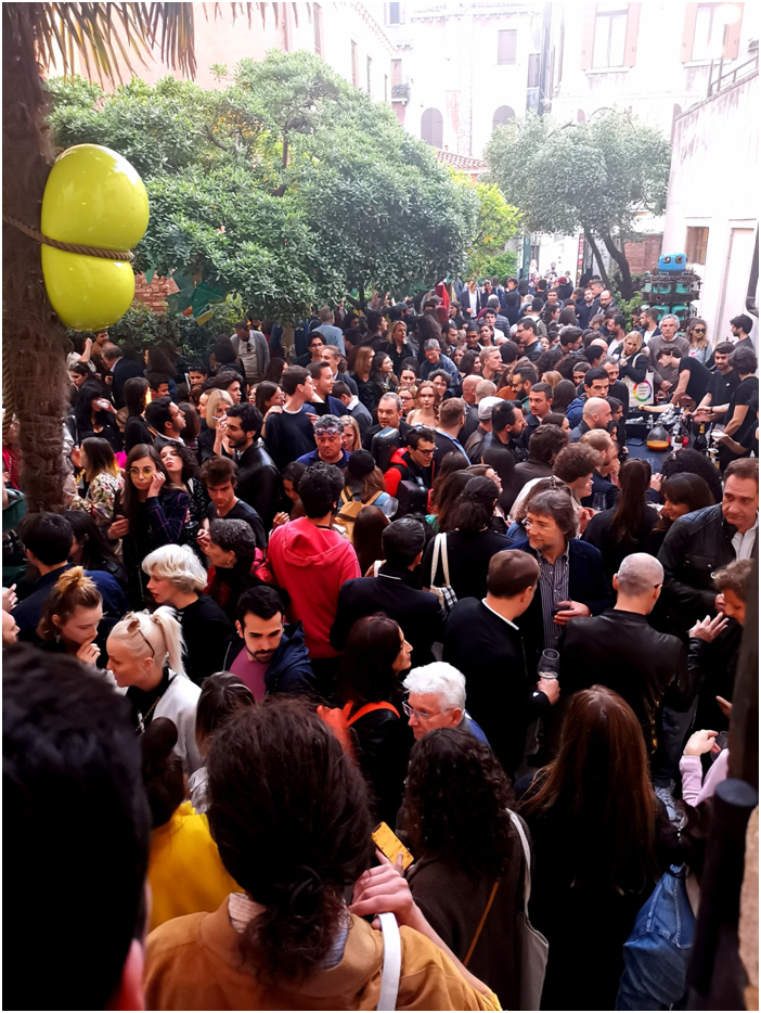 本屆威尼斯藝術(shù)雙年展覽藝術(shù)總監(jiān)為拉夫?魯戈夫(Ralph Rugoff),展覽名為“愿你生活在有趣的時(shí)代"(May You Live in Interesting Times)。全球藝術(shù)事務(wù)基金會(huì),是荷蘭非營(yíng)利組織,負(fù)責(zé)歐洲文化中心(European Cultural Centre)在莫拉宮和本博宮等五個(gè)主要展館主辦的大型國(guó)際展,邀請(qǐng)了世界各地優(yōu)秀藝術(shù)家參展,展覽現(xiàn)場(chǎng)人山人海,人流量大大超過(guò)以往,參觀者大多是來(lái)自世界各地藝術(shù)家與藝術(shù)愛(ài)好者、藏家、畫廊、策展人、及藝術(shù)機(jī)構(gòu)等。