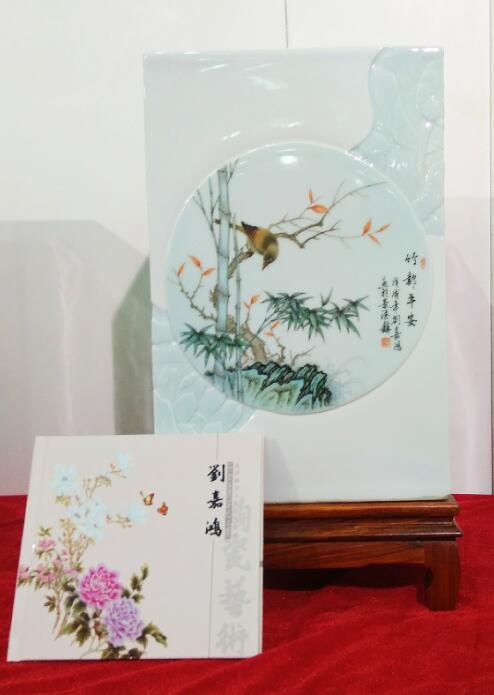 江西省陶瓷技能大師、江西省高級(jí)工藝美術(shù)師、惲派花鳥第十二代傳人、景德鎮(zhèn)青年陶瓷藝術(shù)家劉嘉鴻此次展會(huì)展出的陶瓷藝術(shù)作品共計(jì)35件,包含瓷板畫、瓷瓶、瓷盤、青花瓷、青花斗彩瓷等,其中《春滿園》、《錦堂富貴》、《長(zhǎng)壽圖》等作品呈現(xiàn)陶瓷技藝,展示出劉嘉鴻深厚的藝術(shù)造詣。