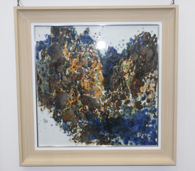 而在此次程云教授展出的作品中,除卻傳統(tǒng)瓷板畫外,一種特別的板畫吸引著記者目光。程云教授介紹到“這是一種新的板畫即“青花+顏色釉”板畫,是一種取青花及顏色釉二者之精華的特殊板畫,既有這青花的明靜素雅,也有著顏色釉的歡快明亮,不同的人,不同的審美都能在這種板畫中找到自己喜歡的元素。”