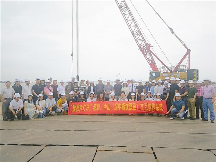 ▲深中兩地文藝家在深中通道建設(shè)工地合影