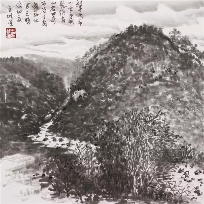 著名美術評論和史論家陳傳席曾這樣評價王維星的山水畫:“以書入畫,線條的書法藝術感突出,爆發(fā)力強。在繼承傳統(tǒng)繪畫中吸收了當代多種文化元素再造語言的形式?!?/p>
