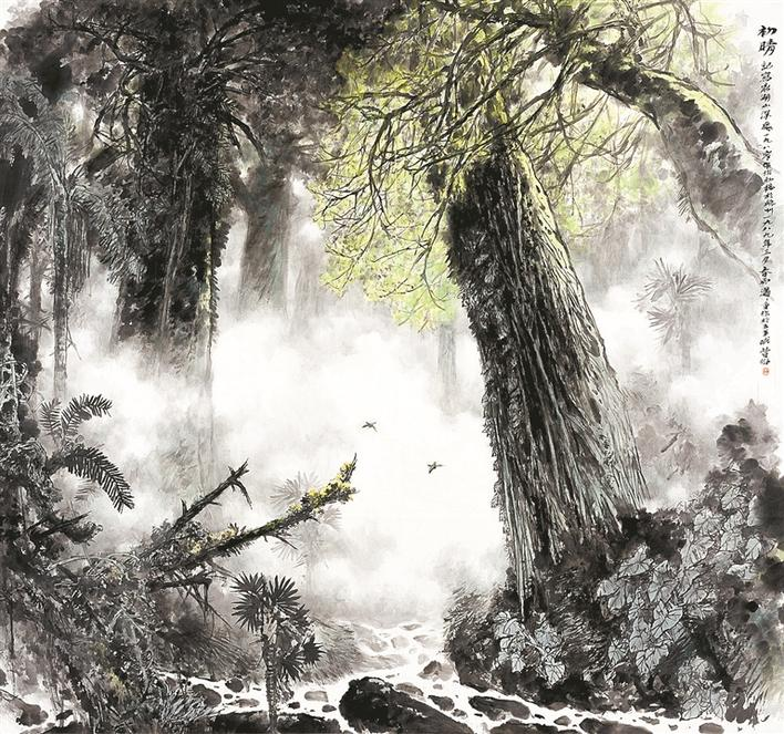 此次展覽試圖通過林豐俗不同主題作品,結(jié)合創(chuàng)作相關(guān)的草圖、速寫、視頻和現(xiàn)實(shí)圖景,以“澄懷造境”“詩(shī)意家園”“妙得心源”“率意成趣”四個(gè)板塊,呈現(xiàn)林豐俗中國(guó)畫的整體面貌。通過對(duì)畫家不同主題作品的梳理,尤其是同一題材的不斷提煉,再現(xiàn)從造化到心源的轉(zhuǎn)化過程,從眼中之真、心中之真,到畫中之真,逐步升華。這構(gòu)成林豐俗對(duì)造化生機(jī)和真意的不斷尋求,也是我們探求林豐俗藝術(shù)世界的起點(diǎn)。