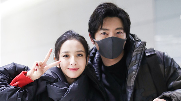 徐海喬機場秀大長腿 紅色羽絨服個性時髦