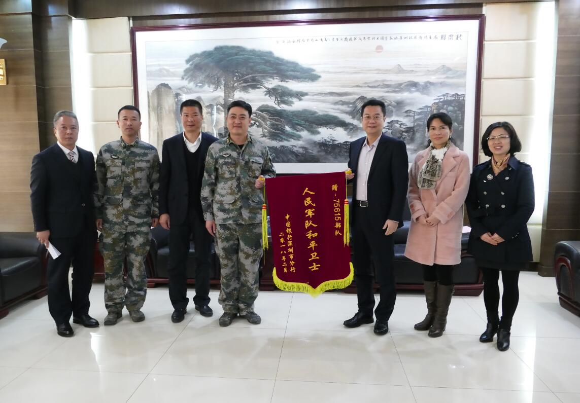 黨的十九大精神和新時代黨的強軍思想,成為全軍新氣象。與新時代精神綱領一脈相承,為發(fā)揮軍政軍民團結這一政治優(yōu)勢,弘揚軍愛民、民擁軍的光榮傳統(tǒng),同時積極響應2018深圳市新春關愛行動,2月7日上午,深圳中行聯(lián)合深圳市關愛辦赴駐港部隊深圳教導團開展“承襲擁軍傳統(tǒng)、共敘魚水深情”主題新春慰問暨黨建學習進軍營系列活動,以實際行動踐行愛心優(yōu)良傳統(tǒng),表達對軍人的關切問候和崇高致意。