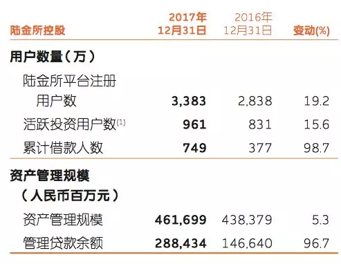 平安年報(bào)顯示,2017年,在財(cái)富管理、消費(fèi)金融、機(jī)構(gòu)間交易等重要業(yè)務(wù)領(lǐng)域,陸金所控股繼續(xù)保持快速發(fā)展,截至2017年末,資產(chǎn)管理規(guī)模達(dá)4,616.99億元,較年初增長5.3%;管理貸款余額2,884.34億元,較年初增長96.7%;首次實(shí)現(xiàn)全年整體盈利。