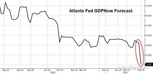 但最嚴重的下調(diào)來自亞特蘭大聯(lián)邦儲備銀行,在今天的零售數(shù)據(jù)公布后,該行將GDP預測下調(diào)至1.5%,較2月6日的2.7%下降了近50%。