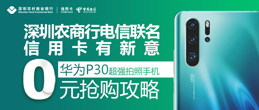 此次深圳農(nóng)商行與深圳電信開展的“零元搶購攻略”活動(dòng),就是針對(duì)眼下炙手可熱的華為P30系列手機(jī)??蛻艮k理電信199元暢享套餐凍結(jié)信用卡額度4320元,持續(xù)凍結(jié)38個(gè)月,即可0元購買P30(8GB+128GB)。