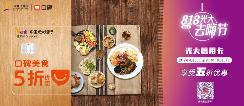 每周一至每周日,光大信用卡用戶且在支付寶實(shí)名認(rèn)證個(gè)人用戶,在口碑平臺(tái)美食消費(fèi)或享受五折優(yōu)惠。