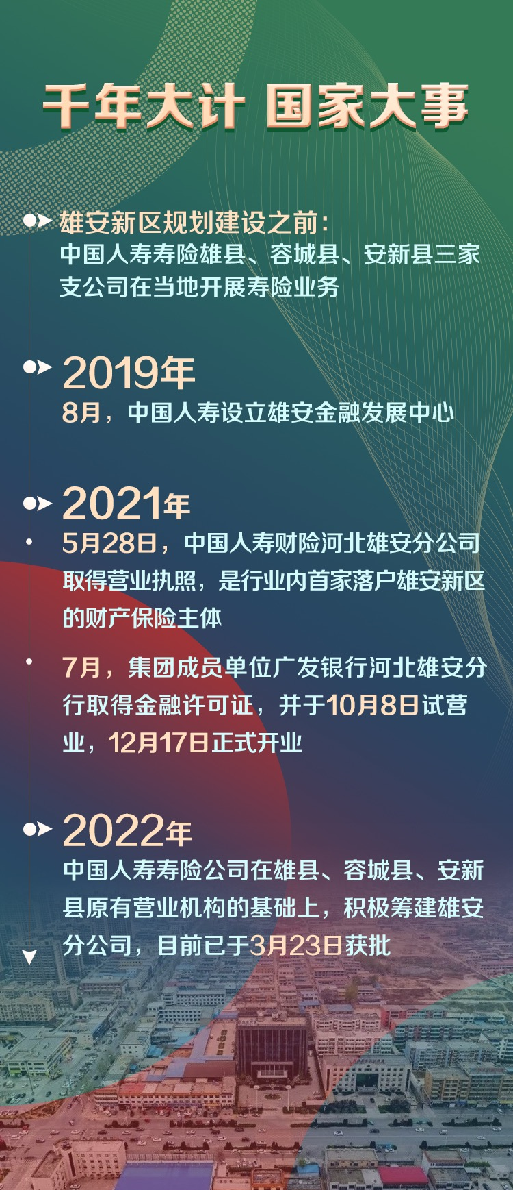 深圳新聞網(wǎng)2022年4月1日訊 設(shè)立雄安新區(qū),對(duì)承接北京非首都功能、探索人口密集地區(qū)優(yōu)化開發(fā)模式、調(diào)整優(yōu)化京津冀空間結(jié)構(gòu)、培育推動(dòng)高質(zhì)量發(fā)展和建設(shè)現(xiàn)代化經(jīng)濟(jì)體系的新引擎具有重大現(xiàn)實(shí)意義和深遠(yuǎn)歷史意義。作為金融央企,中國人壽緊跟國家發(fā)展步伐,時(shí)刻保持“趕考”的清醒和堅(jiān)定,在保險(xiǎn)、投資、銀行三大業(yè)務(wù)板塊上協(xié)同發(fā)力,高標(biāo)準(zhǔn)高質(zhì)量服務(wù)雄安新區(qū)建設(shè)。