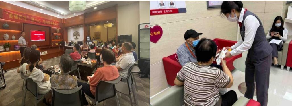 各網(wǎng)點邀請附近的老年客戶到行參與講座,以目前典型的養(yǎng)老騙局作為切入點,通過播放分行自制養(yǎng)老防詐小短片,以生動的語言向老年人揭示一些宣稱以房養(yǎng)老為名,誘騙老年人抵押房產(chǎn)購買“高收益”理財產(chǎn)品等進行非法集資詐騙的陷阱,向老年人普及新型詐騙趨勢,拓寬信息交流渠道,充分發(fā)揮銀行金融知識宣傳的網(wǎng)點效應(yīng)。