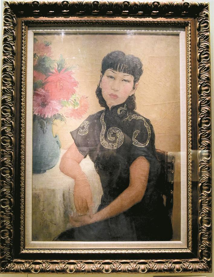 記者在現(xiàn)場看到,這幅最有名的自畫像作于1940年,畫中人身著黑色素花旗袍,斜著頭優(yōu)雅地坐在圓桌邊,桌上置一瓶紅花。古典高雅的著裝,端莊大氣的姿態(tài),眉宇間一縷淡淡的憂愁,增添了的神秘美感。整幅作品用色豐富,筆觸明快。據(jù)悉,這幅作品創(chuàng)作時(shí)正值二次世界大戰(zhàn)爆發(fā),巴黎淪陷,潘玉良棲居郊外,在這一時(shí)期,還有很多佳作問世。