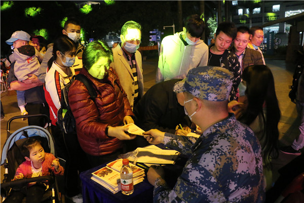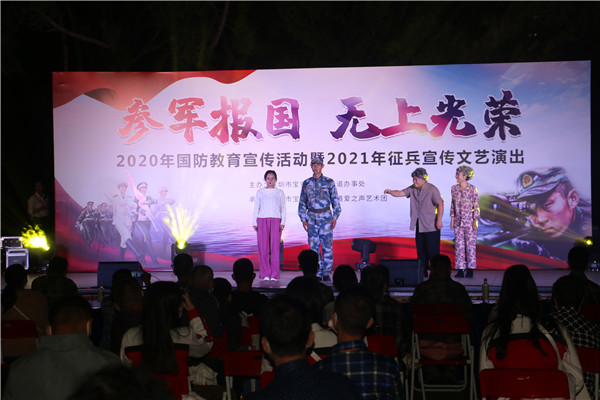演出中間穿插著跟征兵主題相關(guān)的有獎(jiǎng)問(wèn)答環(huán)節(jié),普及征兵和國(guó)防知識(shí),增強(qiáng)活動(dòng)趣味性,互動(dòng)性,現(xiàn)場(chǎng)的群眾踴躍參與答題。