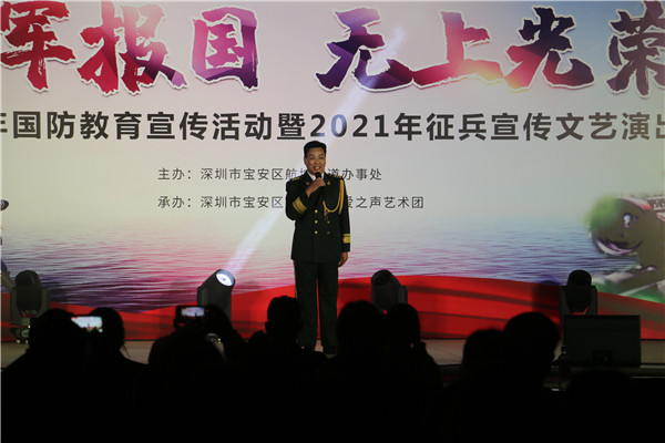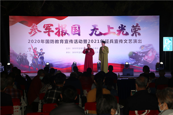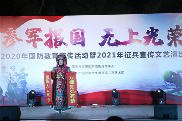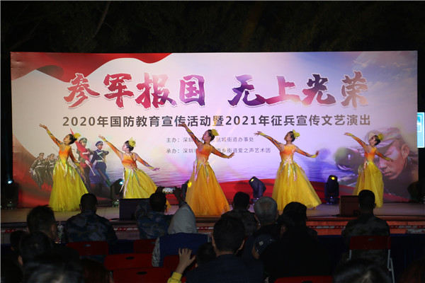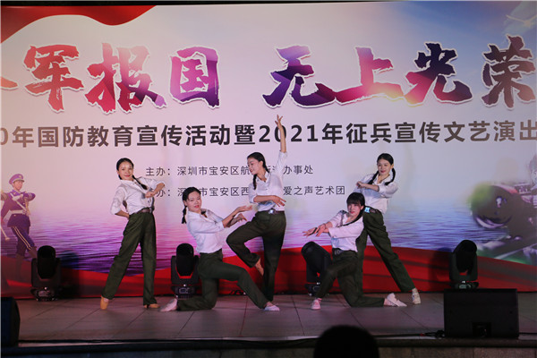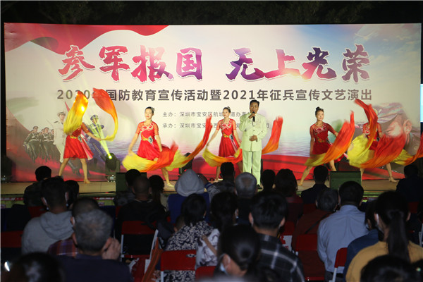 見圳客戶端?深圳新聞網(wǎng)2020年12月2日訊 為增強(qiáng)轄區(qū)居民的國(guó)防意識(shí),做好今年冬季征兵工作,12月1日,深圳市寶安區(qū)航城街道辦“參軍報(bào)國(guó) 無(wú)上光榮”為主題的國(guó)防教育宣傳活動(dòng)暨2021年征兵宣傳文藝演出在航城街道辦成功舉辦。此次活動(dòng)由深圳市寶安區(qū)航城街道辦主辦,寶安區(qū)西鄉(xiāng)街道辦愛之聲藝術(shù)團(tuán)承辦。