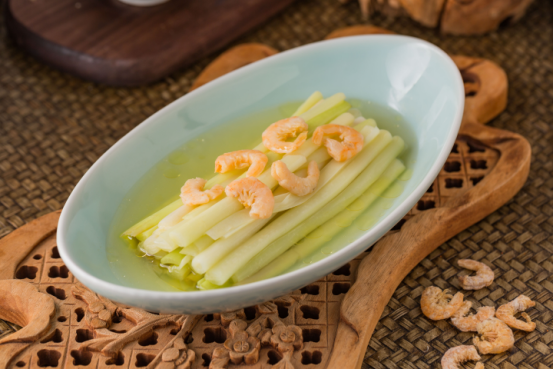 兩千多年前的《詩經(jīng)》即記有“彼降之坡,有蒲有荷”,水生的蒲菜潔白如玉、味美鮮嫩,采摘卻是費時費力,得來不易。精選淮安特產(chǎn)蒲菜,配以上等金鉤蝦米同烹,細(xì)嫩爽口,湯汁清鮮,清香四溢,似有嫩筍之味,為兩淮地域時令名肴。