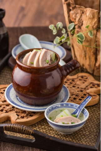 鴨是暑天的清補佳品,健脾化濕,冬瓜性寒味甘,清熱生津。板鴨與冬瓜加入小香蔥煨湯,慢火細(xì)燉出,冬瓜軟爛,板鴨酥香,湯味清鮮,是一道僻暑除煩的夏日美味。