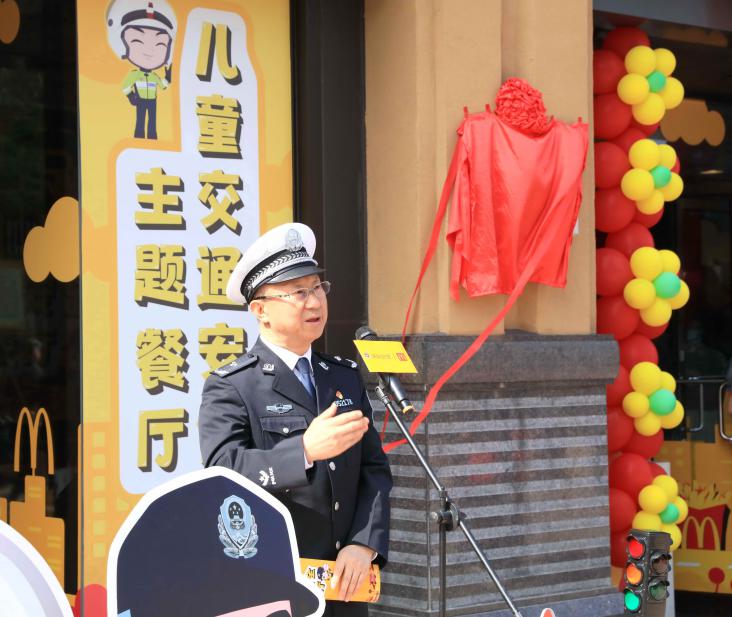 全國首家麥當(dāng)勞兒童交通安全主題餐廳(深圳市福田區(qū)東海城市廣場餐廳)啟動(dòng)儀式上,深圳市交警局副局長馮新毅致辭