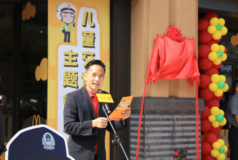 全國首家麥當(dāng)勞兒童交通安全主題餐廳(深圳市福田區(qū)東海城市廣場餐廳)啟動(dòng)儀式上,麥當(dāng)勞深圳市場總經(jīng)理陳影宏致辭