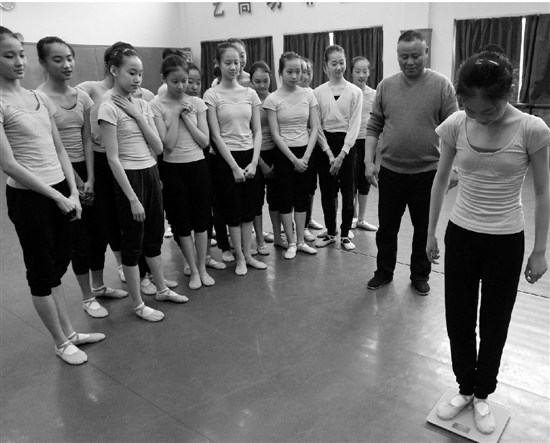 班長杜婉琳說,其實稱體重是舞蹈系的慣例,不僅開學(xué)會稱,每個月,甚至每周老師都會抽查體重?!扒啻浩诘呐⑹侨菀着?,一般讓她們多吃魚,營養(yǎng)能保證,也不容易胖。”昨天負(fù)責(zé)上課的王老師說。