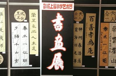 學校是教育人、培養(yǎng)人的主陣地,而深化教育改革,打造藝術特色,不僅僅是幾個教室、一個操場的概念,也絕非是一堂課、一次活動。走進上屋小學,記者發(fā)現,學校良好的藝術文化環(huán)境無時無刻不在發(fā)揮著育人作用。從名家名畫進教室、班級美術活動展區(qū)等班級藝術文化環(huán)境營造到墻畫、板報甚至是校園綠化等校園外部環(huán)境建設,學校的每一處角落都散發(fā)著濃郁的藝術氣息。同時,每個樓層將學生的書法、繪畫等藝術成果進行展示,讓學生從中體會到成就感、享受到審美的愉悅。孩子們在學校濃厚的藝術教育氛圍中,盡展才華、盡情發(fā)揮,放飛自己的夢想。