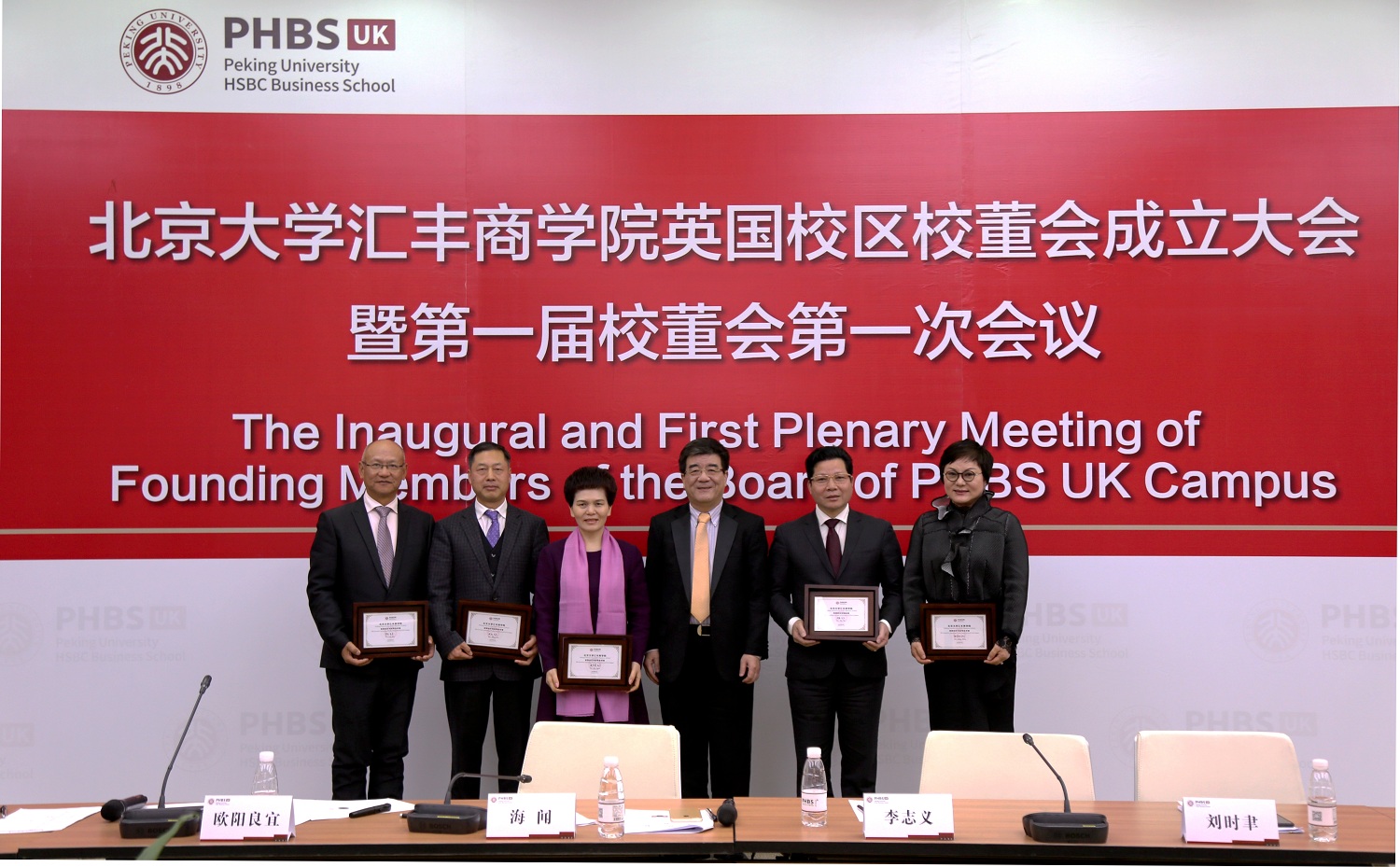 會(huì)議一致通過了《北京大學(xué)匯豐商學(xué)院英國校區(qū)校董會(huì)章程》。海聞院長(zhǎng)向全體創(chuàng)始校董贈(zèng)送了紀(jì)念品并合影留念。
