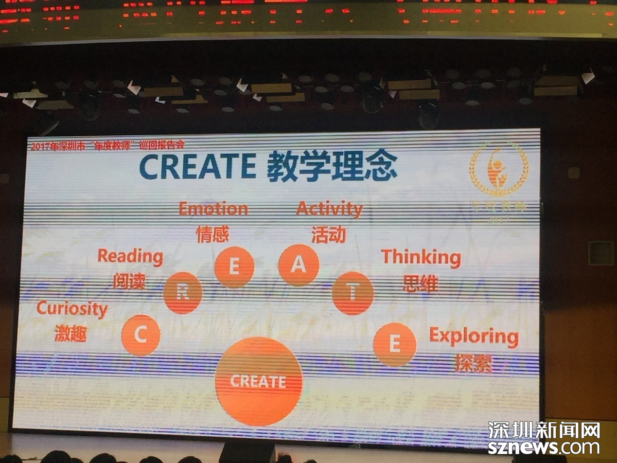 我有幸聽了一場(chǎng)深圳市年度教師的巡回演講,其中一個(gè)老師講到自己的幸福成長(zhǎng)過(guò)程時(shí),展示了自己獨(dú)有的特色教學(xué)理念——CREATE教學(xué)理念,如圖,她的所有課堂充現(xiàn)了激趣、閱讀、情感、活動(dòng)、思維和探索等六大環(huán)節(jié),彰顯特色,成就精英,當(dāng)你達(dá)到如此境界時(shí),幸福感和成就感就會(huì)水到渠成,雖然不求人人成精英,但愿人人有特色。