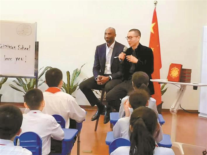 “來了,來了!”隨著人群的騷動,一個(gè)高大的身影閃了進(jìn)來,科比手捧一束鮮花來到了課堂??票鹊牡絹?,讓大家正襟危坐,聽從偶像的人生教誨。