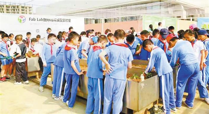 如何找到這所學(xué)校獨(dú)具特色的發(fā)展道路,吳少文一直在思考探索。在探索過(guò)程中,吳校長(zhǎng)發(fā)現(xiàn)現(xiàn)代城市兒童存在“自然缺失癥”,再加上勞動(dòng)教育的弱化,學(xué)校生態(tài)教育內(nèi)容和體驗(yàn)的嚴(yán)重缺失,都對(duì)孩子們情感、態(tài)度和價(jià)值觀塑造造成了嚴(yán)重的負(fù)面影響。面對(duì)這一現(xiàn)狀,吳校長(zhǎng)始終秉承“日新其業(yè),潤(rùn)田致真”的校訓(xùn),在“善教育,法自然”辦學(xué)理念的引領(lǐng)下,將“自然主義教育”融入學(xué)校的校本課程,以新田社區(qū)原有的“田文化”傳承為切入點(diǎn),因地制宜,在校園里開辟一塊教育田,逐步打造校園體驗(yàn)學(xué)習(xí)空間,建立生態(tài)體驗(yàn)式實(shí)踐基地,讓孩子們?cè)跓o(wú)處不在的真實(shí)情境中學(xué)習(xí)成長(zhǎng)。