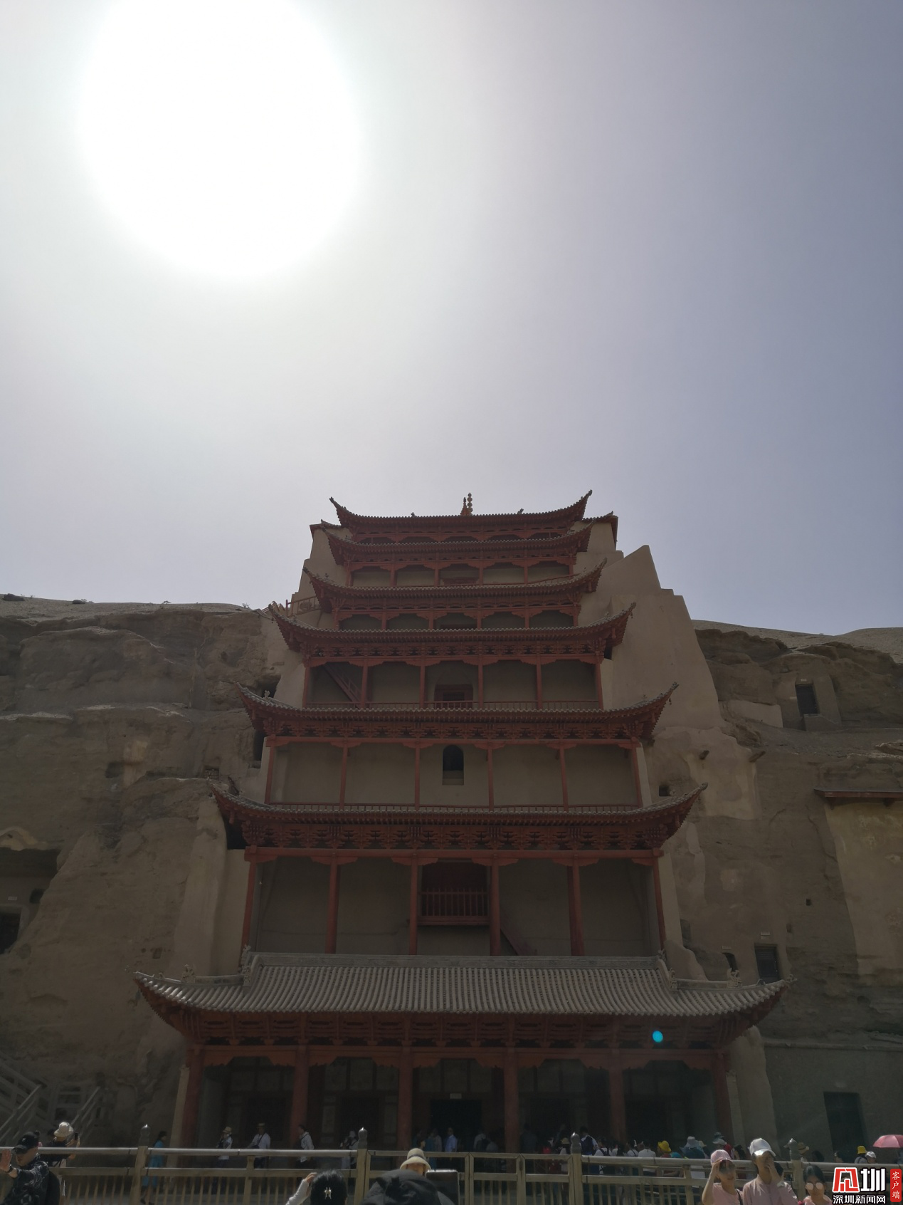 莫高窟是敦煌的代表,是駝鈴悠揚的漫長絲路的縮影。我不知道該怎樣去寫神秘的莫高窟。我不想繪聲繪色地描寫幽暗清冷的洞窟里,沒有講解員的手電筒根本看不清的雕塑。他們的神情舉止,他們的衣著色彩,無論是在藝術(shù)還是宗教與歷史上都是耐人尋味的,從非專業(yè)的角度解讀是不負責任的。所以以下是部分回憶講解員的介紹,部分出自自己對莫高窟的了解。