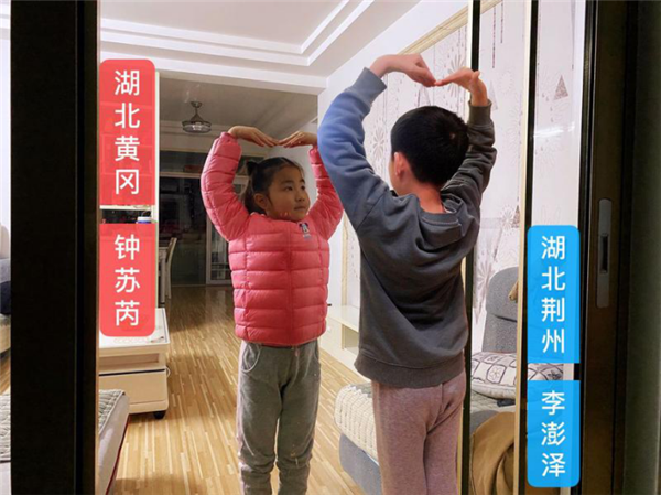 為了達到更好的效果,姚靜和社團外聘何老師通過“騰訊課堂”帶領孩子們云訓練,在視頻中一句一句地指導;制作團隊中,魏浩民媽媽白天要陪伴孩子上網(wǎng)課,要負責煮一日三餐,晚上把二胎寶寶哄睡后開始制作,高樂逸媽媽白天要上班,她只好利用晚上,爭分奪秒地完成視頻拼接;鐘蘇芮媽媽、李澎澤媽媽則在群里出謀劃策,每天盯著屏幕10多個小時。盡管大家是第一次探索用手機軟件、電腦制作視頻,但經(jīng)過一遍遍調(diào)整,最終還是拍攝收集了200多個視頻,100多張照片。