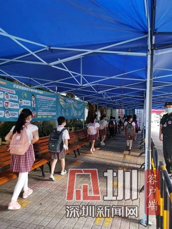 我起了個大早,高高興興地來到學校。在校門口不遠處,我看見一排排金色小腳印在望著我笑,好像在對我說:“歡迎你返校!”進入校園后,熟悉的林蔭道下多了許多的大帳篷,帳篷中間有一個巨大的測溫箱。走過測溫箱,一排感應免洗洗手液站得筆直,正在招呼我們趕緊洗手消毒。因為新冠疫情,我們的校園不一樣了,多了許多守護我們健康的安全小衛(wèi)士。