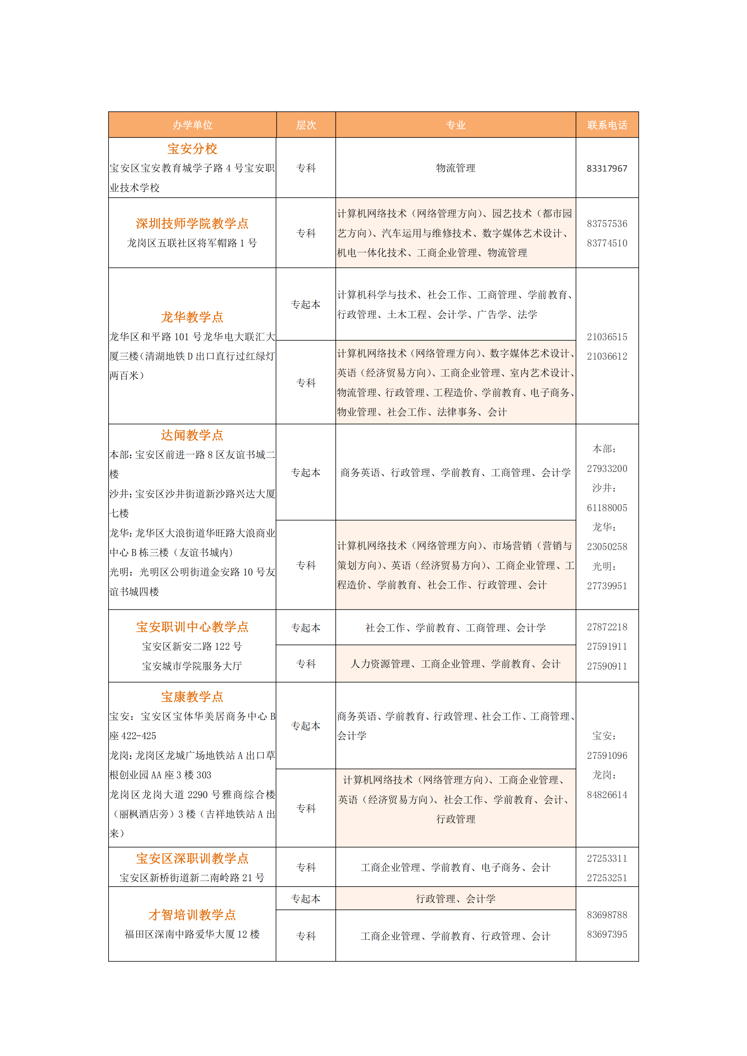 說明:報讀分校、學院、教學點者,請聯(lián)系各分校、學院、教學點辦理報名手續(xù)。