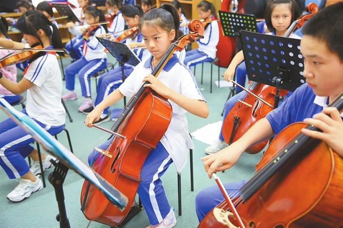 ▲海濱實驗小學(xué)深圳灣部學(xué)生放學(xué)后在校排練交響樂。