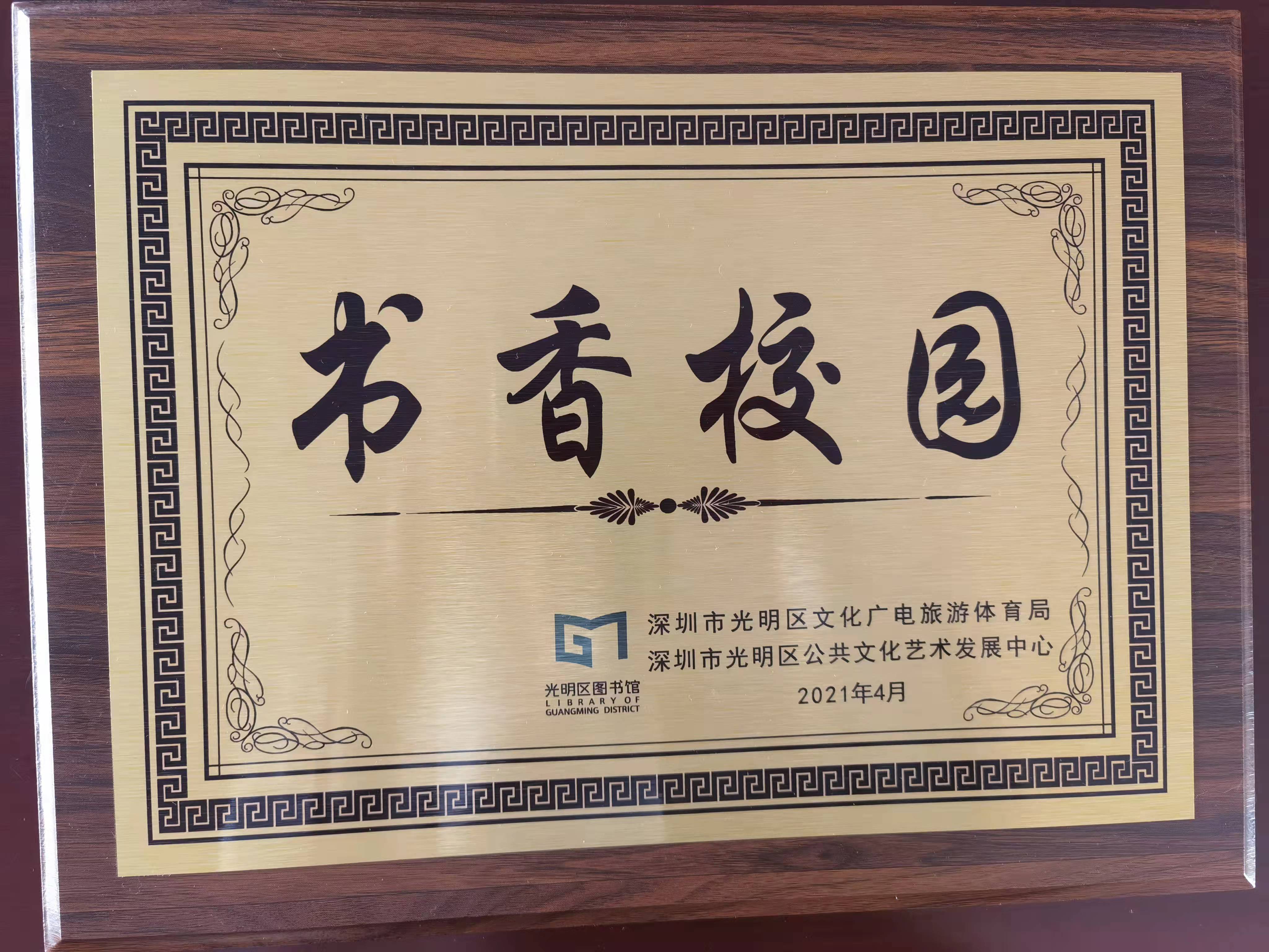 在2021年粵港澳“共讀半小時(shí)”光明區(qū)活動(dòng)啟動(dòng)儀式上,學(xué)校榮獲光明區(qū)“書香校園”的稱號(hào)。