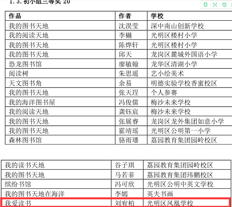 在光明區(qū)第五屆“綠色閱讀——綠書簽”設(shè)計(jì)大賽中,學(xué)校榮獲優(yōu)秀組織獎(jiǎng),郭晨曦同學(xué)獲一等獎(jiǎng),朱文睿、陳柳婉同學(xué)獲二等獎(jiǎng),陳欣妍同學(xué)獲優(yōu)秀獎(jiǎng)。