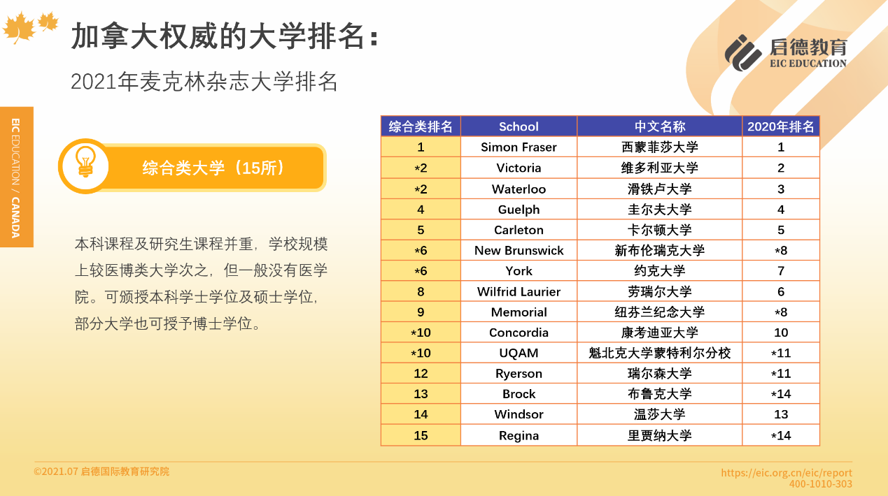 加拿大高校以公立為主,各具特色與優(yōu)勢(shì),教育質(zhì)量在官方評(píng)價(jià)體系中并沒(méi)有顯著區(qū)別,因此,啟德教育建議,在選擇院校時(shí),除了參考麥克林雜志排名,還應(yīng)該通過(guò)院校官網(wǎng)或者留學(xué)顧問(wèn),更全面地了解加拿大高校的實(shí)力。麥克林排名根據(jù)加拿大大學(xué)的類(lèi)型,分為醫(yī)博類(lèi)、綜合類(lèi)、基礎(chǔ)類(lèi)三個(gè)排名,值得一提的是,連續(xù)21年位于基礎(chǔ)類(lèi)大學(xué)排名榜首的蒙特艾莉森大學(xué),是加拿大本科畢業(yè)生中獲得羅德獎(jiǎng)學(xué)金人數(shù)最多的學(xué)校,羅德獎(jiǎng)學(xué)金又被稱(chēng)為“全球本科生諾貝爾獎(jiǎng)”。此外,基礎(chǔ)類(lèi)排名第19的卡普頓大學(xué),在最近一期的Analytics Insight雜志中,與美國(guó)麻省理工學(xué)院、英國(guó)華威大學(xué)等一同入選了2021年10家最著名的分析和數(shù)據(jù)科學(xué)機(jī)構(gòu)。