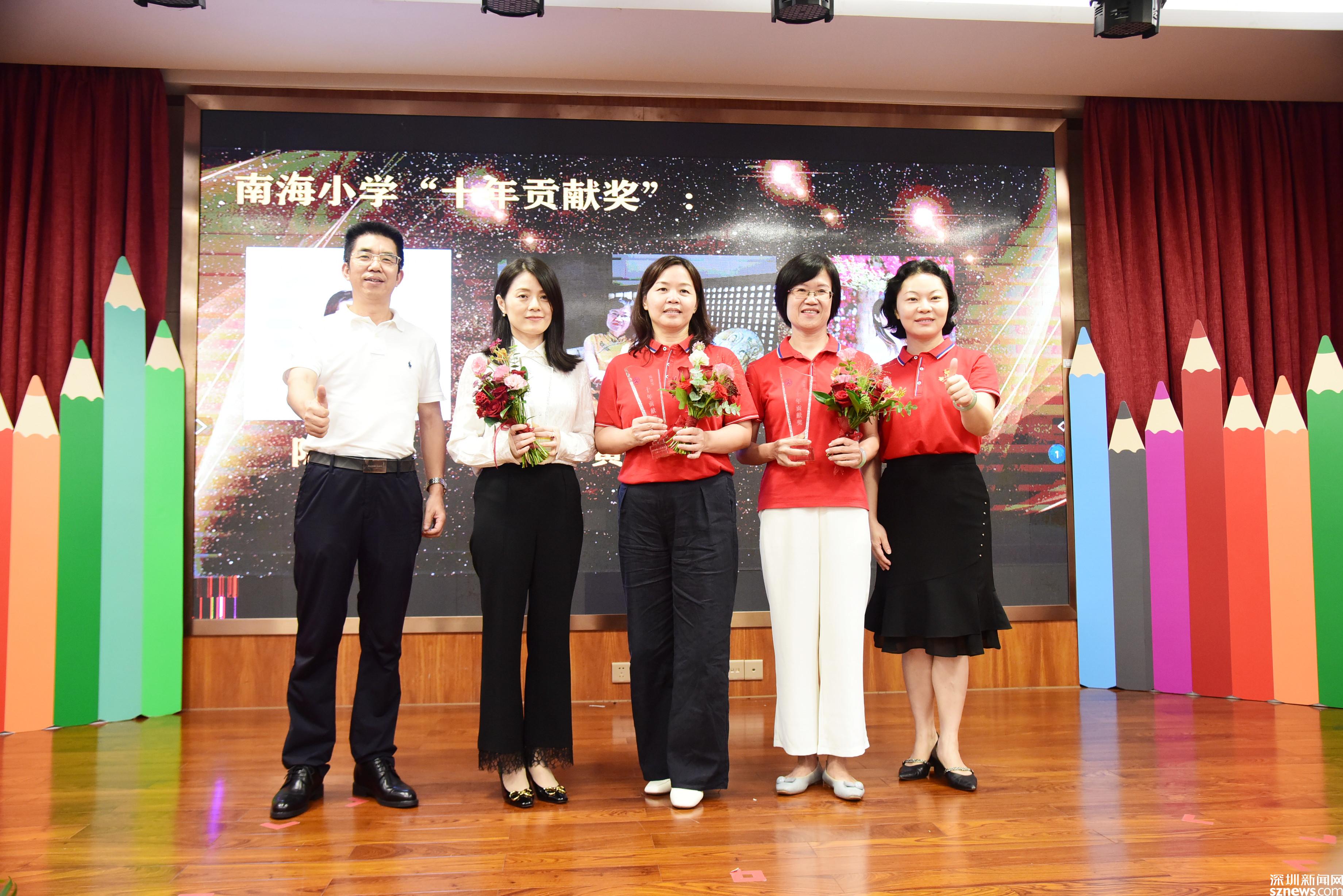 大會(huì)頒發(fā)了南海小學(xué)“十年貢獻(xiàn)獎(jiǎng)”、南海小學(xué)特別貢獻(xiàn)獎(jiǎng)、教學(xué)質(zhì)量獎(jiǎng),也對(duì)南山區(qū)優(yōu)秀教師、南山區(qū)優(yōu)秀班主任、入圍南山區(qū)2021“年度教師”決賽教師等進(jìn)行了表彰。入圍南山區(qū)2021“年度教師”決賽的李艷老師、青年教師代表方子玉老師上臺(tái)分享了她們的教育教學(xué)經(jīng)驗(yàn)與成長(zhǎng)心路歷程,李艷老師說:“我不僅僅是一名英語教師,更是孩子們的夢(mèng)想合伙人!”方子玉老師說:“南山就是一塊永遠(yuǎn)充滿學(xué)習(xí)熱情的沃土,南海更是一所不斷為青年教師搭建學(xué)習(xí)平臺(tái)的寶藏學(xué)校?!?/p>