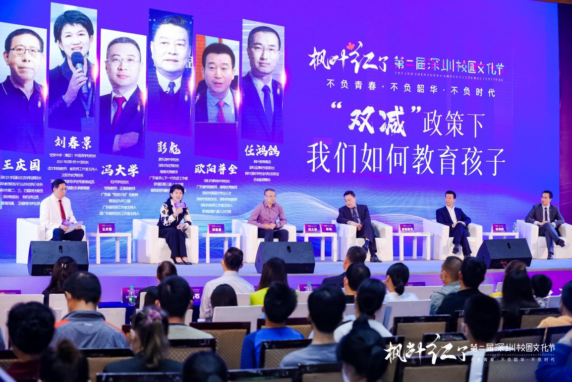 下午,現(xiàn)場舉行“雙減政策,該如何教育我們的孩子”專家論壇,深圳大學(xué)國際交流學(xué)院原院長王慶國、羅湖區(qū)第三屆人大代表彭彪、寶安中學(xué)(集團(tuán))外國語學(xué)校校長劉春景、松坪學(xué)校校長馮大學(xué)、筍崗中學(xué)校長歐陽普全、楓葉教育集團(tuán)副校監(jiān)兼研究院院長任鴻鴿等六位嘉賓出席本屆論壇。圍繞雙減政策下,如何教育孩子?進(jìn)行深層次的探討,分享各自的觀點(diǎn)與建議,為廣大學(xué)生與家長解疑答惑。