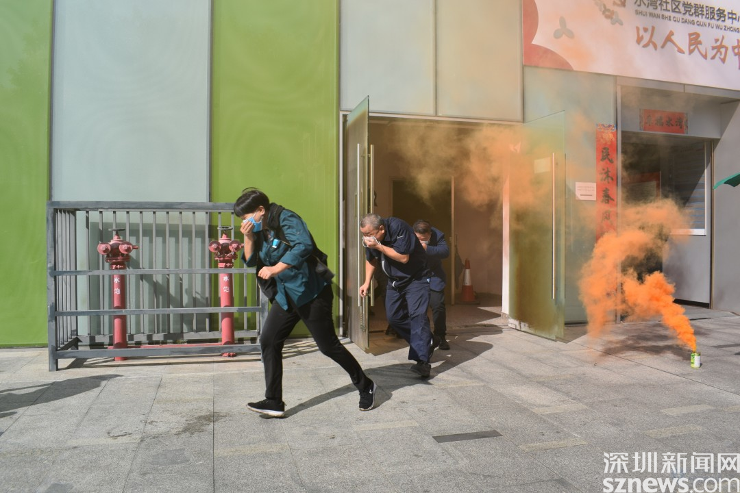 社區(qū)巡查人員發(fā)現(xiàn)水灣1979廣場(chǎng)三座發(fā)生火災(zāi),冒出大量濃煙,火勢(shì)處于初級(jí)階段,著火物質(zhì)不明,便立刻上報(bào)并撥打119報(bào)火警。確認(rèn)水灣1979廣場(chǎng)三座發(fā)生火災(zāi)后,社區(qū)立即啟動(dòng)消防應(yīng)急預(yù)案,消防演練正式開始。