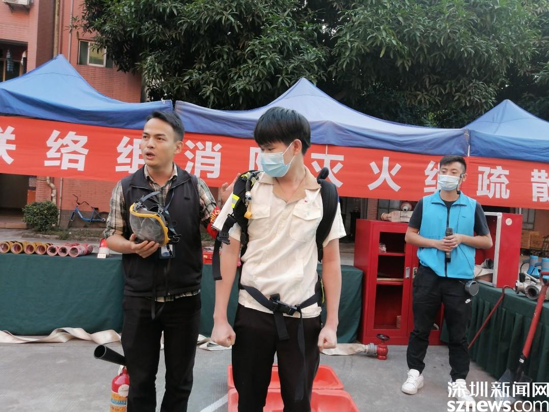 演練情景設(shè)定為工業(yè)園巡查人員發(fā)現(xiàn)火情,立刻上報(bào)并報(bào)警。隨后火警警報(bào)驟響,樓道內(nèi)冒出濃煙,疏散演練正式開(kāi)始。工業(yè)園職工、居民在各組工作人員的指揮下,用口罩、衣服等捂口鼻,屈膝彎腰沿著既定的疏散路線,迅速向安全區(qū)域撤離。隨后社區(qū)消防員到達(dá)現(xiàn)場(chǎng),用消防高壓水槍進(jìn)行高空滅火,撲滅火災(zāi),解除警報(bào)。演練結(jié)束后,社區(qū)還組織工業(yè)園職工、居民參加安全體驗(yàn)活動(dòng),學(xué)習(xí)消防救援設(shè)備的用法、進(jìn)行消防結(jié)繩和滅火實(shí)操訓(xùn)練。