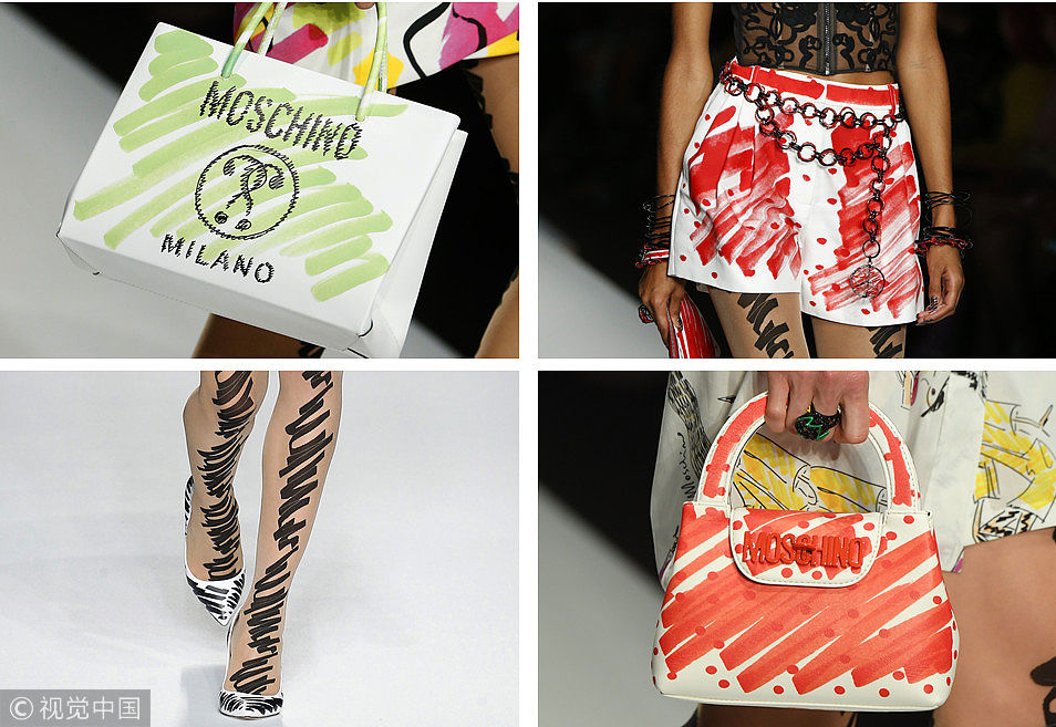 Moschino 2019春夏系列發(fā)布會(huì)于當(dāng)?shù)貢r(shí)間20日在米蘭舉行,滿場(chǎng)的涂鴉元素好玩的不得了,信手涂鴉在服飾和配飾上,瞬間放下束縛回歸本真,帶你追憶無憂無慮的孩童時(shí)代~ (圖片來源:視覺中國(guó))