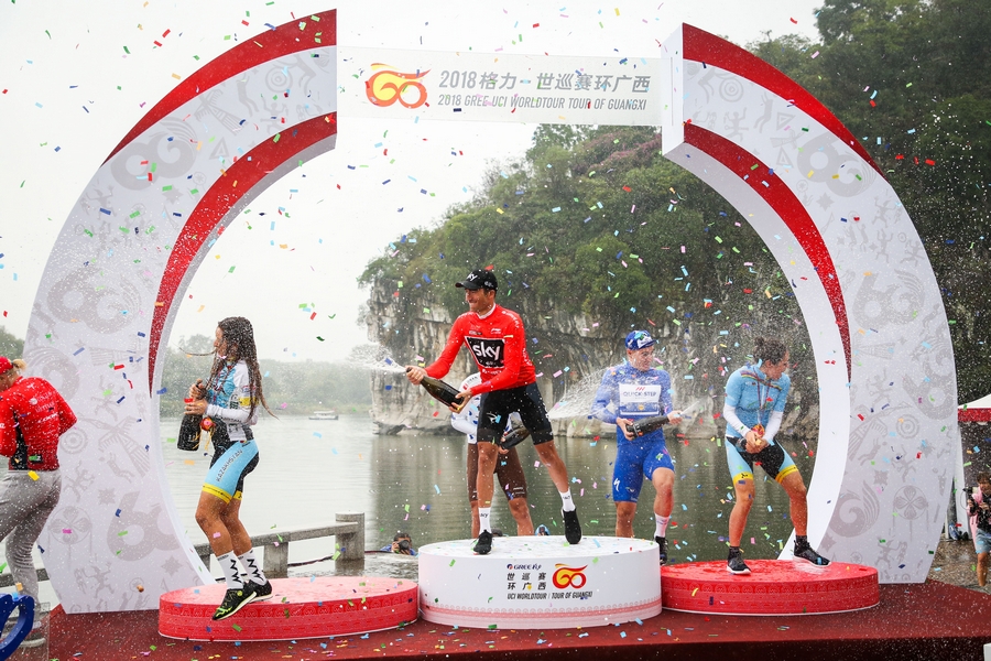 “世巡賽?環(huán)廣西”是亞洲地區(qū)備受關(guān)注的公路自行車賽事,吸引了包括環(huán)法冠軍天空車隊(英國)、環(huán)意冠軍太陽網(wǎng)車隊(德國)等18支世界著名車隊前來參賽,結(jié)合廣西令人驚艷的自然環(huán)境風(fēng)光,吸引了全世界的目光。環(huán)廣西世巡賽全程由南向北,以多種形式嚴格考驗騎手們的體力、騎行技術(shù),以及團隊合作能力。10月21日下午的桂林城市賽段中,快步地板車隊小將法比奧?雅克布森(Fabio Jakobsen)最后時刻反超博拉-漢斯格雅車隊沖刺手帕斯卡?阿克曼(Pascal Ackermann),取得個人在本屆格力“世巡賽?環(huán)廣西”上的第二個勝場。而來自天空車隊的詹尼?莫斯孔(Gianni Moscon)在經(jīng)歷了6個比賽日超過900公里的騎行后最終奪冠,拿下了的環(huán)廣西世巡賽的總冠軍??偝煽儊喖拒姺謩e是博拉-漢斯格雅車手菲利克斯?格羅斯查特內(nèi)爾(Felix Grosschartner)以及阿斯塔納車手謝爾蓋?切爾涅斯基(Sergei Chernetski)。