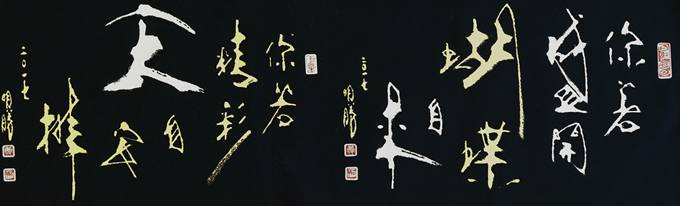 黃明勝從事書法與篆刻鉆研已逾30年,他認為:美感的建立才是學習藝術(shù)的第一步,而非技法;奠定了美感的基礎(chǔ)再從中建立自己的價值,隨波不逐流。秉持『自出新意,不踐古人』的理念,書寫從未臨帖,歷經(jīng)數(shù)十載,而今創(chuàng)作出融合中國傳統(tǒng)藝術(shù)與現(xiàn)代風格的書法創(chuàng)新體裁—『書畫體』。
