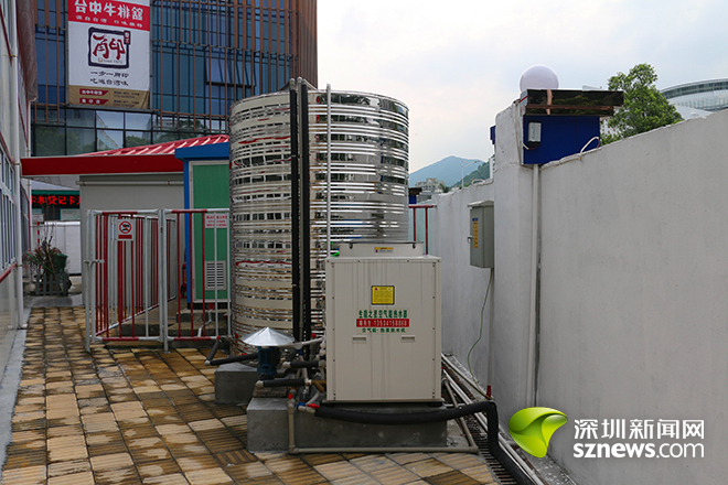 在施工駐地,施工單位還采用了耗電少的空氣能熱水器。空氣能熱水器通過(guò)吸收空氣中的熱量,便隨時(shí)產(chǎn)生熱水。在常年平均氣溫22.5℃的深圳,熱源充足,使用起來(lái)綠色環(huán)保又方便。