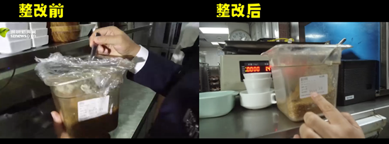 4月19日記者回訪發(fā)現(xiàn)該餐廳負(fù)責(zé)人整改態(tài)度積極,針對檢查中指出的問題進(jìn)行了逐項(xiàng)整改,包括:后廚外專門騰出一個(gè)空間擺放食材及工具,不再占用廚房區(qū)域;生熟食已做到分開放置;倉庫擺放整齊有序;消毒柜溫度已可以達(dá)到90度以上;新設(shè)置一個(gè)粗加工區(qū)與烹調(diào)區(qū)隔離開;被查封的涼菜間重新進(jìn)行了問題排查與改善。經(jīng)過轄區(qū)食藥監(jiān)管部門的復(fù)評后目前該餐廳的餐飲量化等級已恢復(fù)至B級。該餐廳負(fù)責(zé)人也向記者表示,“星期三查餐廳”不僅是檢查,還給予他們對后廚管理的手把手的指導(dǎo),提升很大,后續(xù)將繼續(xù)加強(qiáng)后廚管理,給消費(fèi)者一個(gè)安全健康的就餐環(huán)境保障。