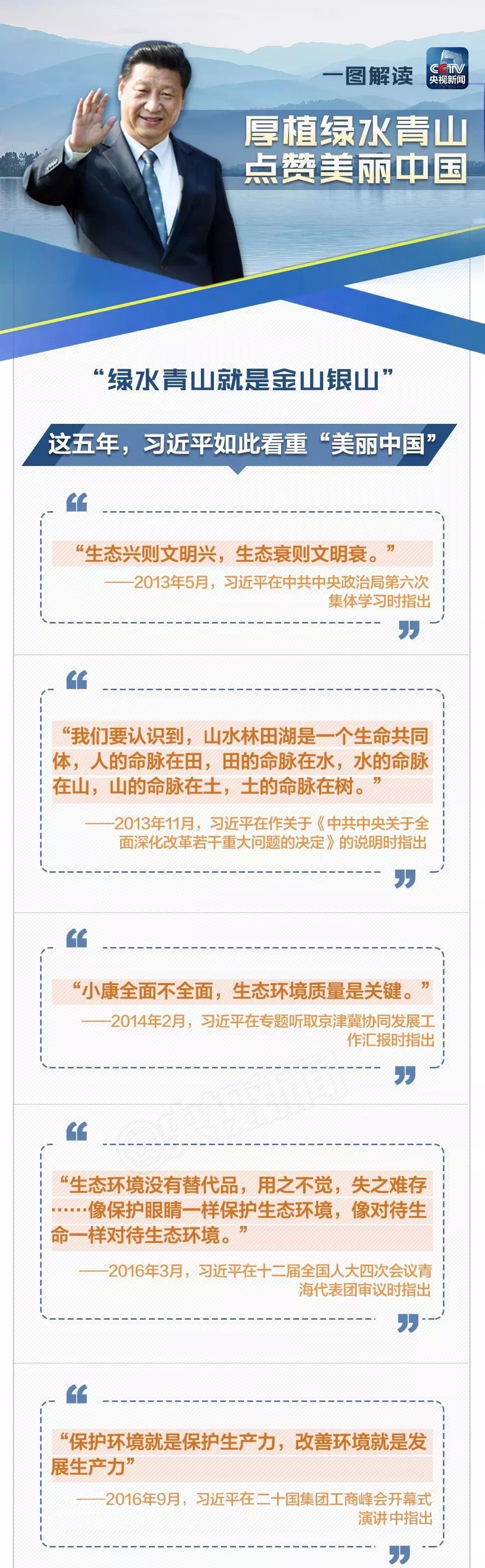 在總書記的引領(lǐng)之下,十八大以來我國建立并實施中央環(huán)境保護督察制度,大力推動綠色發(fā)展,深入實施大氣、水、土壤污染防治三大行動計劃,率先發(fā)布《中國落實2030年可持續(xù)發(fā)展議程國別方案》,實施《國家應(yīng)對氣候變化規(guī)劃(2014-2020年)》,推動生態(tài)環(huán)境保護發(fā)生歷史性、轉(zhuǎn)折性、全局性變化。生態(tài)環(huán)境持續(xù)改善,碩果累累: