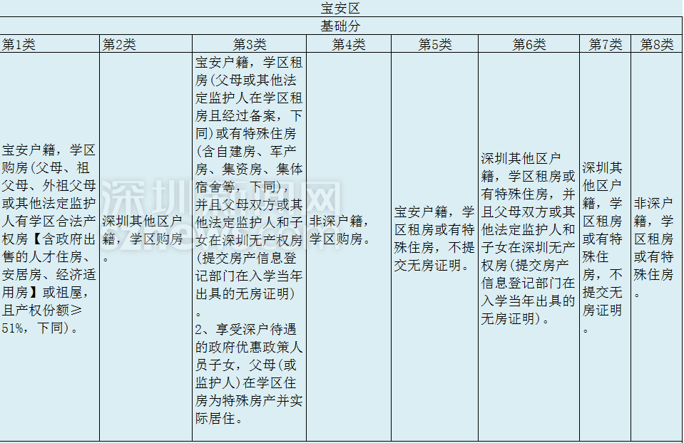 寶安公辦學(xué)校采取“先類別后積分”錄取制度,按照從第1類到第8類依次錄取,同一類學(xué)生則按照積分從高到低錄取,公辦學(xué)校招生計(jì)劃錄滿為止。